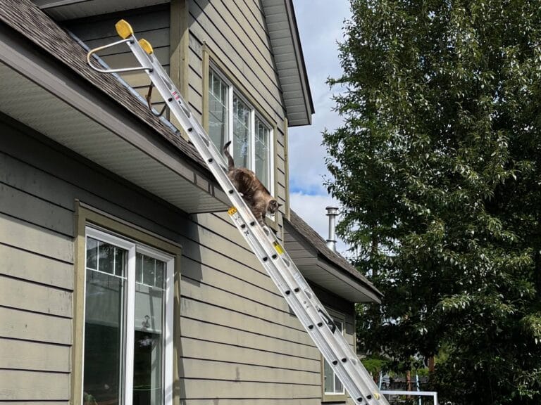 Not sure how long she had been on the roof, but she was very quick to make use of the ladder.
